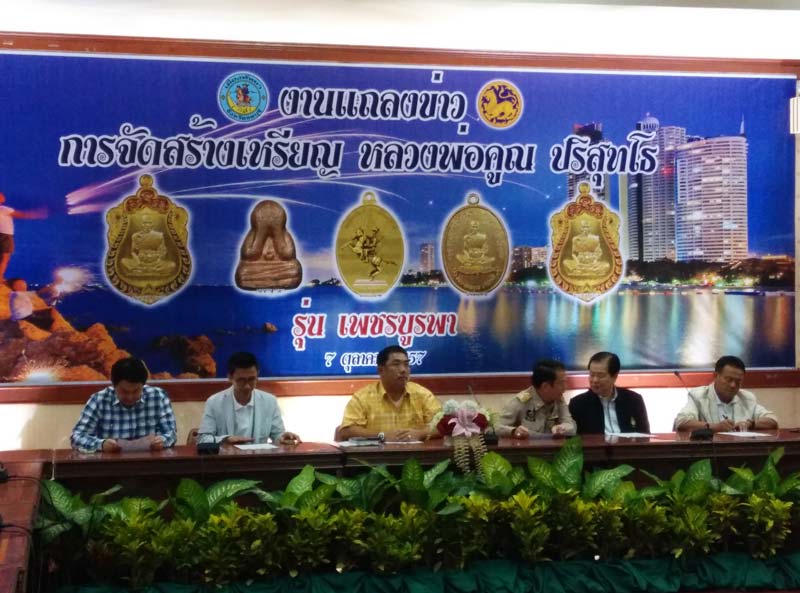เมื่อวาน 7 ต.ค. 2557 เมื่อเวลา 13.30 น. ณ ห้องประชุมเมืองพัทยา จ.ชลบุรี ได้มีการแถลงข่าวเปิดตัวการเปิดจองเหรียญหลวงพ่อคูณ รุ่น เพชรบูรพา อย่างเป็นทางการ