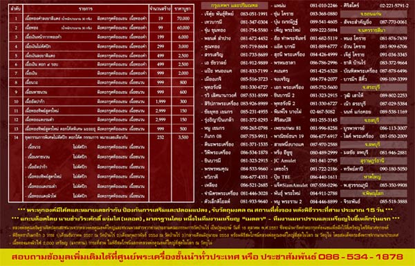 หลังจากที่ได้อัพเดทข้อมูลกันมาอย่างต่อเนื่อง พร้อมกับเสียงตอบรับจากทั่วทุกสารทิศ วันนี้ฤกษ์ดีวันลอยกระทง ขออนุญาตแจ้งข่าววันเปิดจองพร้อมกันทั่วประเทศ ในวันศุกร์ที่ 7 พฤศจิกายน พ.ศ.2557 วันพรุ่งนี้นั่นเองครับ พี่ๆสามารถสั่งจองบูชาได้ตามศูนย์จองที่ได้รับมอบหมายอย่างเป็นทางการทั่วประเทศ ซึ่งทุกๆท่านสามารถไปขอชมไปส่องเหรียญจริงๆ ก่อนตัดสินใจ ได้ที่หน้าร้านของศูนย์จองครับ ^0^ ยังไงก็อย่าพลาดกันนะครับ ขอให้ทุกๆท่านมีความสุขมากๆ ในเทศกาลลอยกระทงปีนี้นะครับบบ