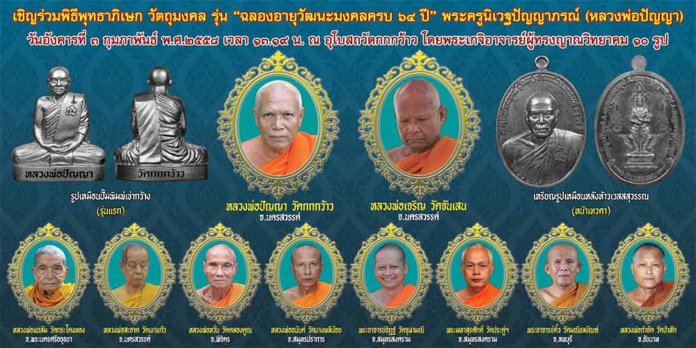 1. พระครูนิเวฐปัญญาภรณ์ หลวงพ่อปัญญา วัดกกกว้าว ต.พรหมนิมิต อ.ตาคลี จ.นครสวรรค์