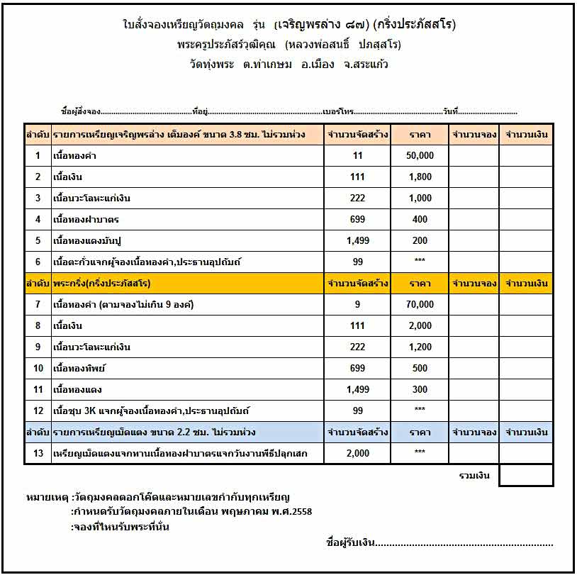 ส่วนวันปลุกเสกวางไว้ปลายเดือน พค.58 ถ้ามีการเปลี่ยนแปลงจะแจ้งให้ทราบอีกครั้งครับ |