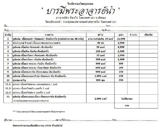 รายการจัดสร้างและรายชื่อศูนย์จอง รูปหล่อพระอาจารย์นำ รุ่น"บารมีพระอาจารย์นำ" วัดดอนศาลา จ.พัทลุง