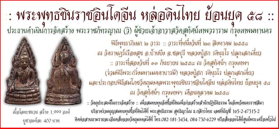 ท่านใดสนใจร่วมบุญใหญ่สมทบทุนจัดซื้อที่ดินสร้างสำนักปฏิบัติธรรม บริจาคที่พระสุทธิธรรม สุทธิญาโณ หรือสั่งจองบูชาวัตถุมงคลพระพุทธชินราชอินโดจีน ย้อนยุค๕๘ หล่อดินไทย รุ่นนี้หลวงปู่ฮก วัดราษฏร์เรืองสุข ชลบุรี อธิษฐานจิตปลุกเสกเดี่ยวให้สองวาระ ได้ที่ศูนย์พระเครื่องรุ่งธิญาพระเครื่องพาต้า 081-372-8293 แหลมทองพระเครื่อง เดอะมอลล์ ท่าพระ 086-454-2566 ร่มโพธิ์ 081-441-3424 หมูพระราม2. 089-446-8899 อภินิหารพระเครื่อง 081-583-3274 ยศไทรน้อย 084-730-6229 |