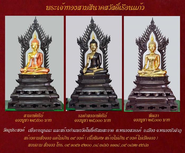 | หัวข้อกระทู้ : $$..พระเจ้าทองสามสีนาคสวัสดิ์เรือนแก้ว พระบูชา หน้าตัก ๑๒ นิ้ว สูง ๑ เมตร รายได้ร่วมสร้างกำแพงวัด |