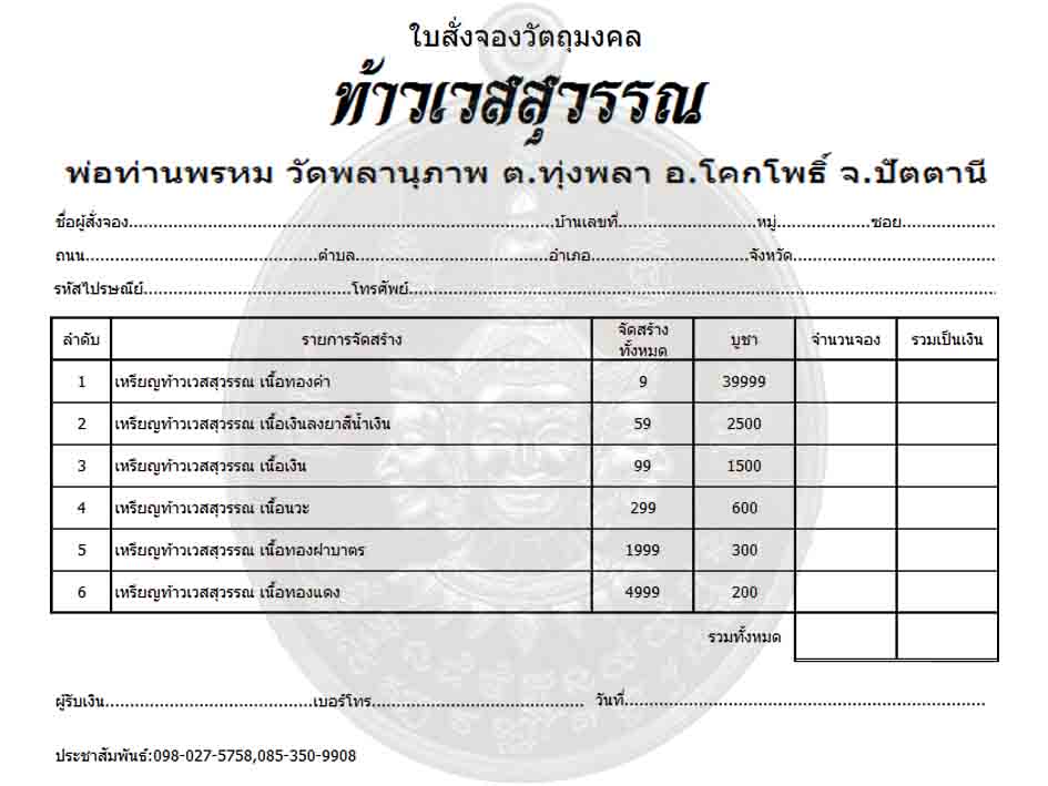 23 กรกฎาคม 2558 ขึ้น 8 คำ เดือน 8-8...ท้าวเวสสุวรรณ รุ่นแรก พ่อท่านพรหม วัดพลานุภาพ จ.ปัตตานี...เทพผู้เป็นใหญ่ใน 3 โลก คุมทั้งสวรรค์ โลกมนุษย์ และขุมนรก...ผู้ประทานทั้งทรัพย์สิน เงินทอง วาสนา บารมี และกันภูติผีปีศาจ