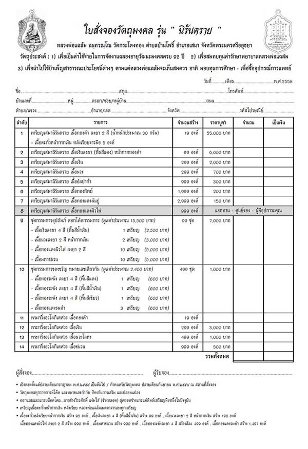 วันศุกร์ที่ 31 กรกฎาคม พ.ศ.2558 (พรุ่งนี้) วันเปิดจองวัตถุมงคล รุ่น "นิรันตราย"