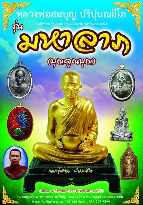 ออก ณ วัดลุงเข้า อําเภอหนองบุญมาก จ.นครราชสีมา โทร 098-1409641