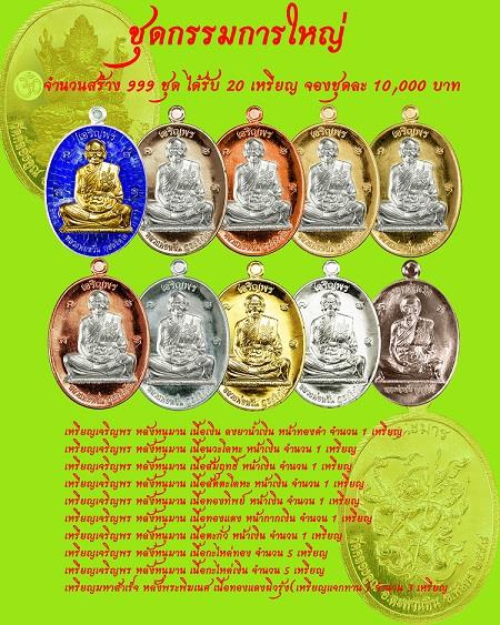 ชุดกรรมการใหญ่ จองชุดละ 10,000 บาท ได้รับ 20 เหรียญ ฌแลี่ยเหรียญละ 500 บาท