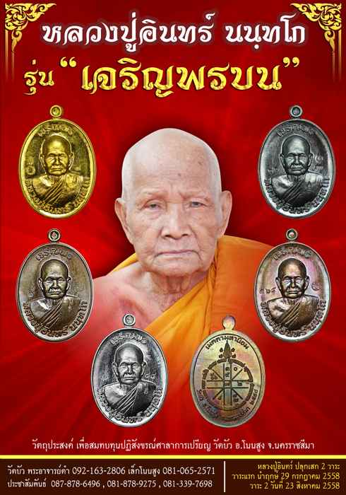 แจ้งกำหนดการ..หลวงปู่อินทร์ ปลุกเสก เหรียญเจริญพรบน วัดบัวโนนสูง 23/8/58
