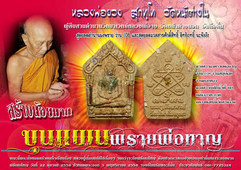 และทำการส่งมอบให้ผู้ที่ศรัทธาเลื่อมใส ตลอดจนศิษย์ยานุศิษย์ของหลวงพ่อยวง วัดหน้าต่างใน ต่อไป...ซึ่งวัตถุมงคลชุดนี้ทีมงานศิษย์หลวงพ่อยวงบรรจงสร้างมอบให้อาจารย์คือหลวงพ่อยวงเสกกำกับอย่างเข้มขลัง แถมสร้างน้อยมาก ของดีย่อมมีน้อยครับ ท่านใดสนใจอยากมีไว้บูชาก็หาสั่งจองกันได้แล้วครับ
