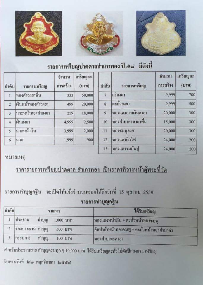 ขณะนี้ในการรับเหรียญปาดตาลกฐินหลวงปู่ฮก ปี58 ถึงบิลเล่มที่100แล้วครับ ส่วนใครที่จองกับผมไว้บิลของผมเล่มที่106 ผมได้สอบถามไปที่วัดหลายครั้ง น่าจะรับของก่อนปีใหม่หรือหากได้รับก่อนผมจะประกาศทุกทราบและจัดส่งให้ทุกท่านอย่างโดยด่วนครับ หากมีความคืบหน้าอย่างไรจะแจ้งให้ทราบครับ |