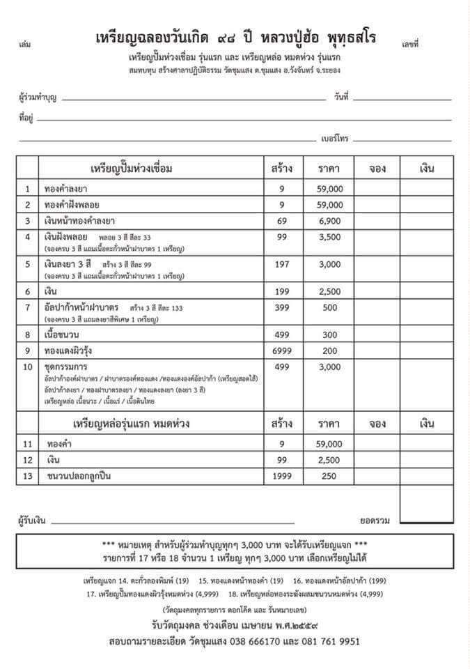 ทางวัดมีเหรียญแถมสมณาคุณท่านที่ร่วมบุญทุกๆ 3,000 บาท