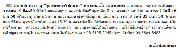 วาระที่ 3 วันพุธที่ 23 มีนาคม เวลา 15.39 น. พิธีพุทธาภิเษก ณ วัดบ้านแดง โดย