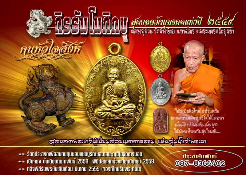 มีพร้อมพระเครื่อง ขอแจ้งกำหนดการและรายละเอียดการเปิดจอง สุดยอดวัตถุมงคล ปี 2559 "ถิรธมฺโมภิกฺขุ" หลวงปู่ป่วน วัดช้างน้อย อ.บางไทร จ.พระนครศรีอยุธยา