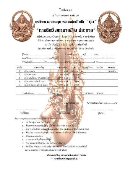 จะเปิดจองพรุ่งนี้เวลา 21.00 น หน้าจองพระใหม่ |