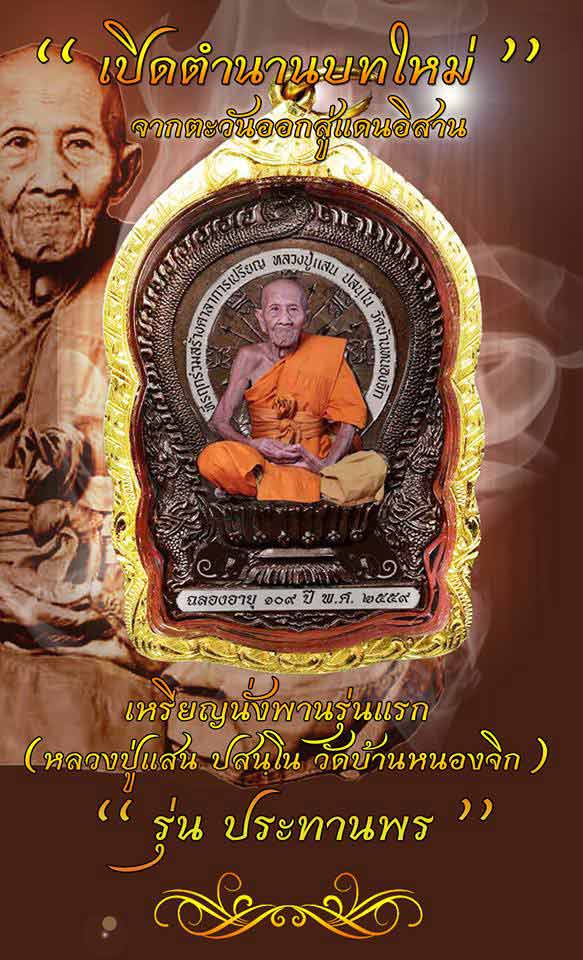 @@ เหรียญนั่งพานประทาน เป็นเหรียญนั่งพานรุ่นแรกของหลวงปู่ ซึ่งออกแบบตามเหรียญตำนานจากแดนตะวันออกของหลวงปู่ทิม วัดละหารไร่ มาสู่หลวงปู่แสน ปสนฺโน แห่งวัดบ้านหนองจิก จ.ศรีสะเกษ