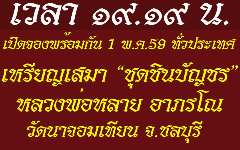รายการจัดสร้าง "ชุดชินบัญชร" ๗ พิมพ์ สุดยอดมหานิยม หลวงพ่อหลาย อาภรโณ วัดนาจอมเทียน จ.ชลบุรี