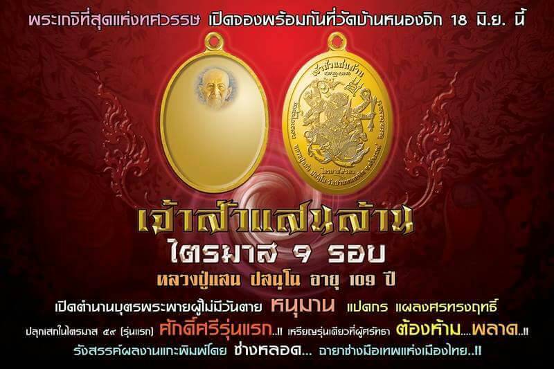 😉หลวงปู่แสน รุ่น เจ้าสัวแสนล้าน ไตรมาส ๙ รอบ รุนแรก 😉