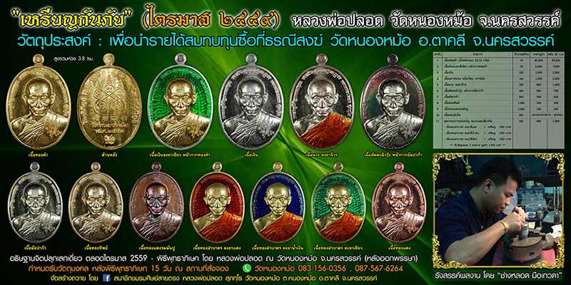 ขออนุญาตประชาสัมพันธ์ แจ้งข่าวความคืบหน้า "เหรียญกันภัย ไตรมาส 2559" วันนี้ขอนำรูปแบบเหรียญตัวจริงแต่ละเนื้อมาฝากกันครับ สำหรับโค้งสดท้ายของการเปิดให้สั่งจองบูชา ซึ่งจะปิดให้สั่งจองในวันที่ 30 มิ.ย. 59 นี้ และจะทำการปรับราคาการสั่งจองบูชา ในวันที่ 20 ก.ค. (เข้าพรรษา) นี้นะครับ ^0^