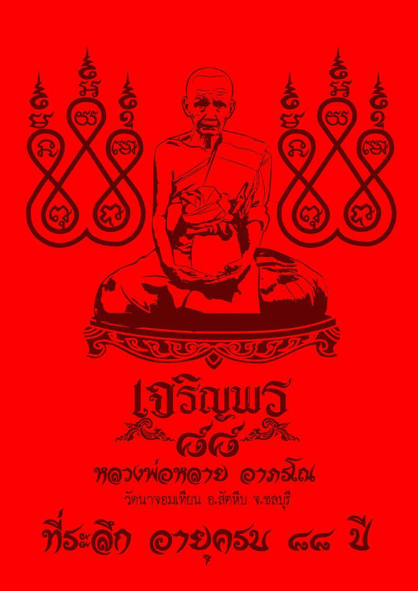 รับผ้ายันต์หลวงพ่อหลาย อาภรโณ รุ่นเจริญพร๘๘