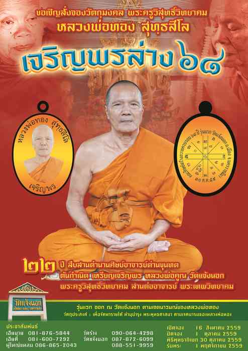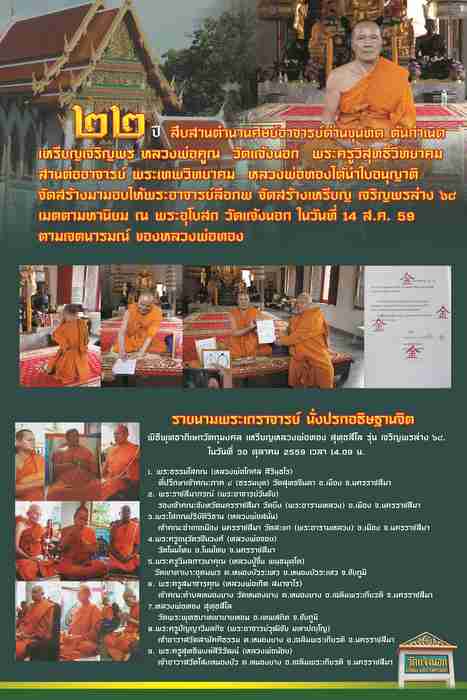 งานพิธีพุทธาภิเษก ในวันที่ 30 ต.ค.2559 เวลา 14.09 น ณ.พระอุโบสถ วัดแจ้งนอก .