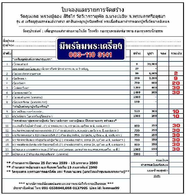 นำรายการและจำนวนที่จะเปิดจองมาให้ดูกันก่อนครับ พรุ่งนี้ 25/12/59 พบกันที่กระดานจองพระเครื่องสร้างใหม่ครับ