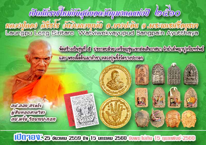 | หัวข้อกระทู้ : => พรุ่งนี้ 25/12/59 เปิดจองวัตถุมงคล รุ่น 5 หลวงปู่ลอง วัดวิเวกวายุพัด จ.พระนครศรีอยุธยา... |
