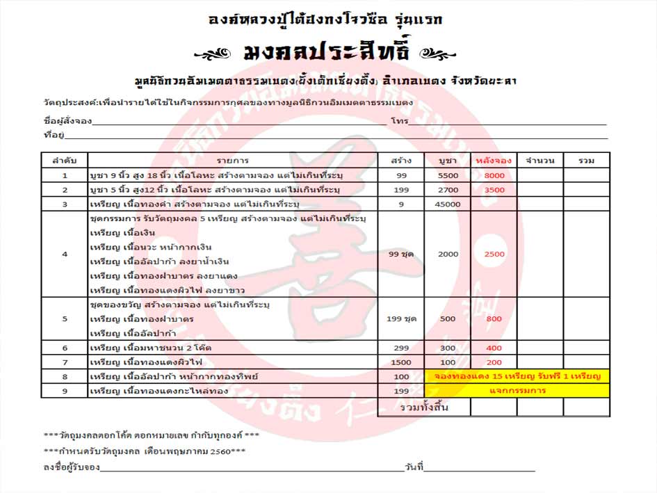 หน่วยรับจองวัตถุมงคลองค์ไต้ฮงกงโจวซือ รุ่น"มงคลประสิทธิ์(如意吉祥)"