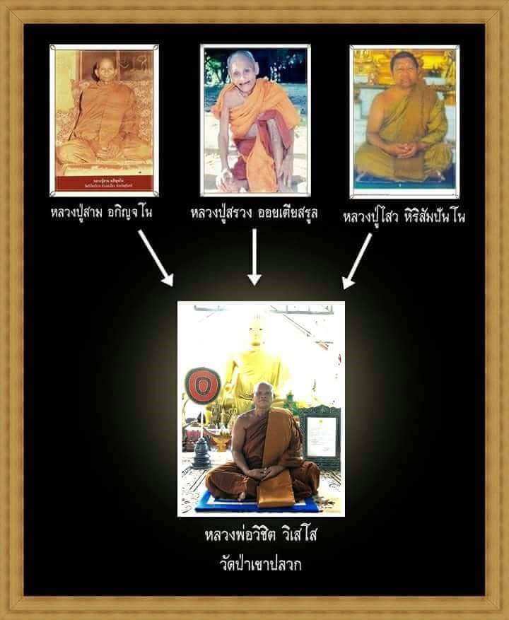 สิ่งที่หลวงปู่สรวงได้มอบไว้ให้หลวงพ่อวิชิตเพื่อประโยชน์ในภายภาคหน้าต่อพระพุทธศาสนาสิ่งนั้นก็คือวัตถุมงคลจำนวน หนี่งคือ พระขุนแผนอุ้มไก่ ซึ่งหลวงพ่อวิชิตได้เก็บรักษาไว้เป็นอย่างดีมาจนถึงปัจจุบันหลังจากได้ร่ำเรียนวิชาจากหลวงปู่สรวงจนเป็นที่พอใจของหลวงปู่สรวงแล้วก็ถึงเวลาที่หลวงพ่อวิชิตออกธุดงค์ต่อไปเพื่อแสวงหาในสิ่งที่หลวงพ่อวิชิตได้มุ่งมั่นและตั้งใจไว้ท่านได้ธุดงค์เรื่อยมาเหมือนมีสิ่งดลใจให้ให้ท่านได้มาพบสถานที่ที่หนึ่งซึ่งในสถานที่นี้หลวงพ่อวิชิตท่านได้พบกับหลวงปู่ไสวสำหรับหลวงปู่ไสวนี้เปรียบเสมือนครูบาอาจารย์ของหลวงพ่อวิชิตอีกรูปหนึ่งจากการพบปะกันหลวงปู่ไสวได้ให้คำแนะนำในสิ่งที่หลวงพ่อวิชิตแสวงหามาโดยตลอดซึ่งสถานที่ที่ได้พบกับหลวงปู่ไสวคือเขาปลวก หลวงปู่ไสวได้บอกกับหลวงพ่อว่าสถานที่แห่งนี้เหมาะอย่างยิ่งที่จะเจริญภาวนาแสวงหาธรรมชั้นสูงสถานที่แห่งนี้มีบารมีสิ่งศักดิ์สิทธิ์มากมายปกปักษ์รักษาดูแลอยู่และสิ่งที่หลวงพ่อวิชิตท่านได้ค้นพบด้วยตัวท่านเองเป็นจริงอย่างที่หลวงปู่ไสวเคยกล่าวไว้หลวงพ่อวิชิตได้อยู่สถานที่แห่งนี้มาจนถึงปัจจุบัน คือวัดป่าเขาปลวก หลวงพ่อวิชิตได้บรรพชาอุปสมบทเมื่ออายุได้ 22 ปี จนถึงปัจจุบันรวมพรรษา 33 พรรษา ( 2560 ) หลวงพ่อยังคงทำตามปณิธานของท่านที่ตั้งไว้ตามที่ได้ร่ำเรียนศึกษาในด้านยาสมุนไพรให้ความช่วยเหลือผู้ตกทุกข์ได้ยากด้วยโรคภัยไข้เจ็บต่างๆ จนเริ่มเป็นที่รู้จักมากขึ้น หลวงพ่อวิชิตท่านถือสัจจะวาจาเป็นสำคัญคำไหนคำนั้น วาจาของท่านที่กล่าวออกมาศักดิ์สิทธิ์ยิ่งนัก ในบรรดาผู้ใกล้ชิดหลวงพ่อหลายๆท่านทราบกันเป็นอย่างดี หลวงพ่อเป็นพระสมถะเรียบง่าย ไม่ยึดติดในลาภยศสรรเสริญเยินยอต่างๆ หลวงปู่สามเคยกล่าวรับรองหลวงพ่อวิชิตไว้ว่าเป็นพระแท้ที่กราบไหว้ได้อย่างสนิทใจ เทพเจ้าเขาปลวก เทวดาของชาวบ้าน หลวงพ่อวิชิต ( วิเสโส ) วัดป่าเขาปลวก อ. ละหานทราย จ.บุรีรัมย์ |
