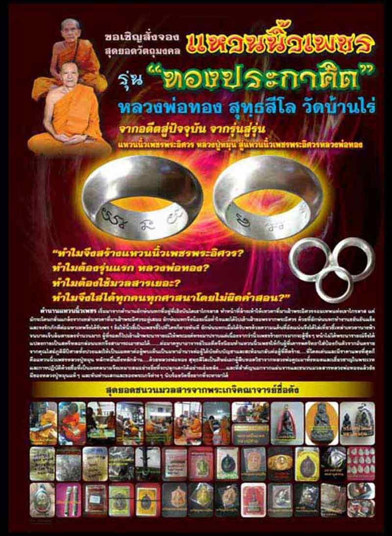 ตอนนี้เหลือไม่มากแล้วนะครับท่าน อย่ารอช้าเพราะทำตามจอง เท่าที่ดูที่จองส่วนมากจะออกไปนอกกลุ่มหลวงพ่อส่วนมาก อย่ารอช้านะก่อนจะอดได้ของดีที่สุดยอดไปด้วยมวลสารชั้นบรมครู ที่ต่อให้หาแทบพลิกแผ่นดินก็ไม่ใช่จะได้มาเช่นพระกริ่งสุจิตโต ปี ๒๔๘๗ วัดบวร หรือแผ่นโค๊ตพระนาม ญสส และมวลสารอีกมากมายทั้งแผ่นจารทั้งเหรียญหลวงพ่อทองและเกจิอีกหลายองค์ทั่วทุกภาคของเมืองไทย |