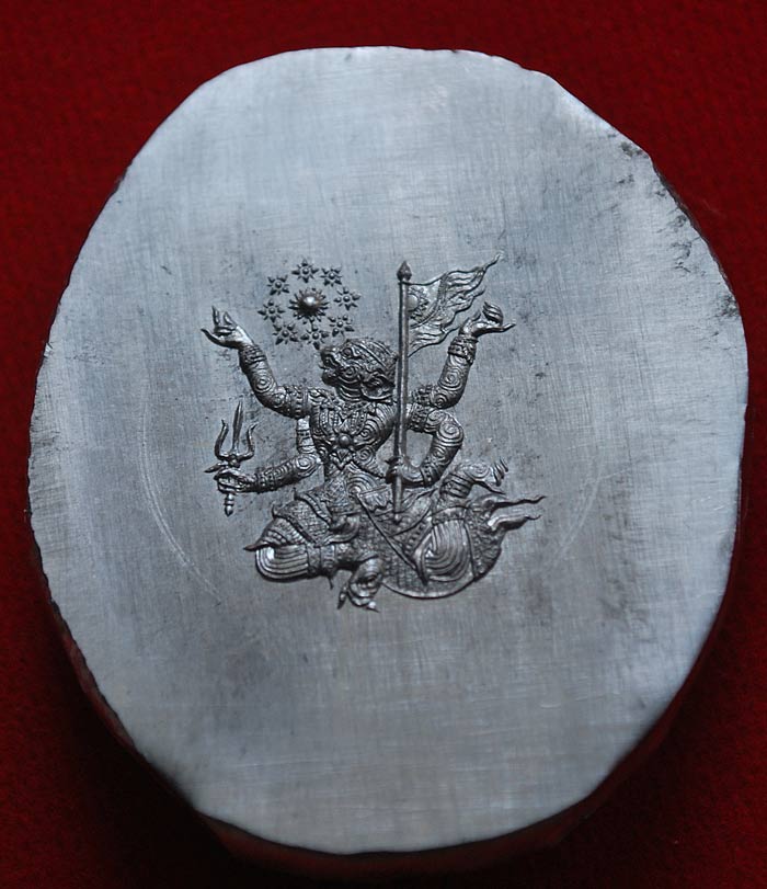 พื้นหลังเหรียญรอปรับแต่งเป็นแอ่งกระทะ เพื่อเน้นองค์พระให้ดูโดดเด่นสวยงาม