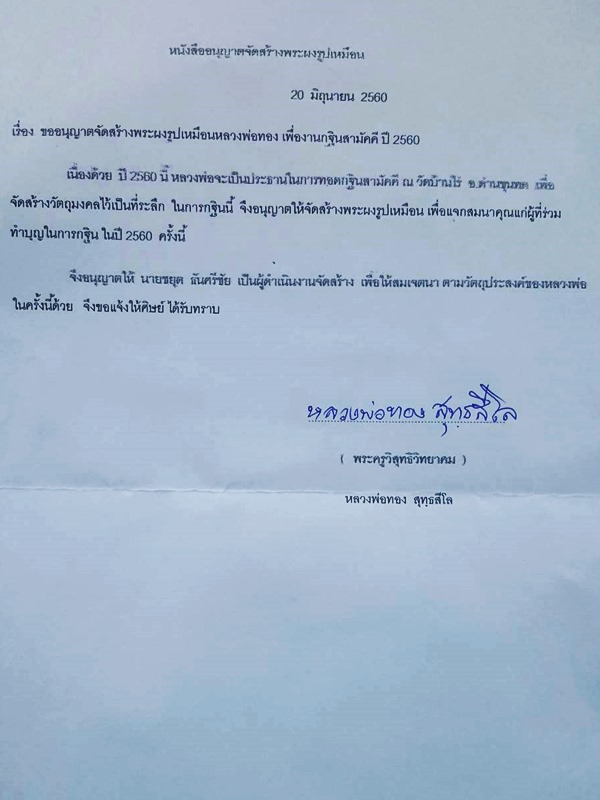 หลวงพ่อทอง มีความประสงค์อยากให้สานุศิษย์ ได้ร่วมกันทำบุญงานกฐินครั้งนี้ จึงได้มอบหมายให้ คุณศิลป์ เมืองทอง จัดสร้างพระผงรูปเหมือน รุ่น รวย รวย รวย มอบให้กับท่านที่มีจิตศรัทธาร่วมงานบุณกฐิน วัดบ้านไร่ ในปีนี้ครับ