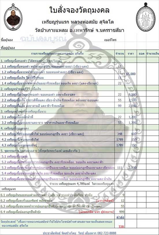 ศูนย์จอง รุ่นแรกหลวงพ่อสมัย สุจิตโต