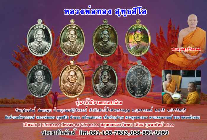 อีกส่วนหนึ่ง ถวาย หลวงพ่อทอง สุทฺธสีโล จำนวน ๑๐๐,๐๐๐ บาท แล้ว เพื่อทำนุบำรุง พระพุทธศาสนา ตามเจตนารมณ์ ของ หลวงพ่อทอง