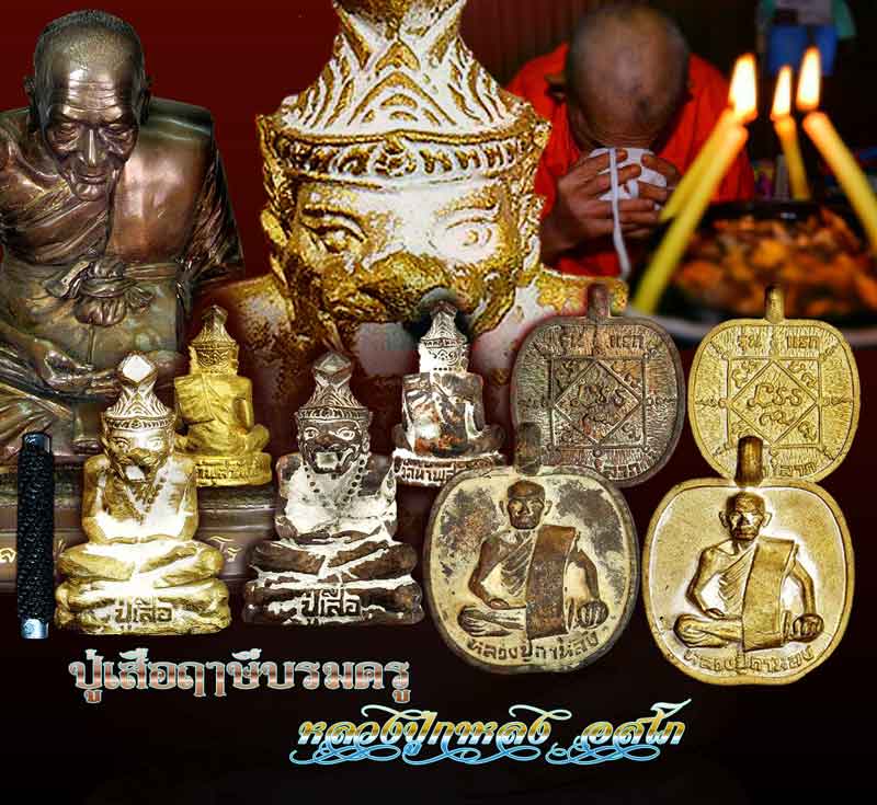 ปู่เสือ ฤษีบรมครู ,เหรียญรุ่นแรก หล่อแอปเปิ้ล ,ตะกรุดคู่ชีวิตสมบัติพ่อค้า ,มีดหมอ โคตรเศรษฐี มีพลัง รุ่น ๒