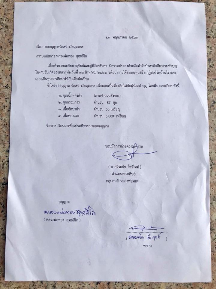 เพื่อสมทบทุนสร้างกุฏิสงฆ์ วัดบ้านไร่