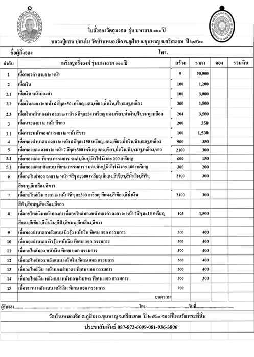 ท่านใดอยากเป็นศูนย์ กระจายบุญ แจ้งมาได้นะครับ ยังเหลือยอดอยู่ ครับ เปิดให้จอง 20กรกฏาคม61 ปิดจอง 30 กันยายน 61ปลุกเสก และรับพระปลายเดือน ตุลาคม 61 วันเวลาจะแจ้งอีกครั้งครับ |