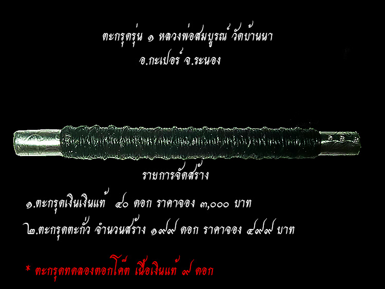๑.ตะกรุดเงินแท้ จำนวน ๔๐ ดอก ราคาจอง ๓๐๐๐ บาท