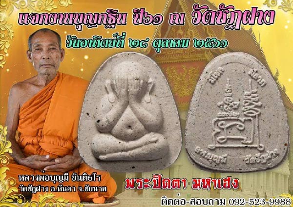 เฮงๆๆ มีโชคมีลาภ เฮงๆๆ......พระปิดตามหาเฮง หลวงพ่อบุญมีจัดสร้างวัตถุมงคลไว้แจกงานบุญทอดกฐิน ปี61 ปีนี้หลวงพ่อบุญมีจัดสร้างพระปิดตาที่เน้นพุทธคุณด้านเมตตามหาเสน่ห์มหานิยม กันดวงแย่แก้ดวงตก ให้มีโชคมีลาภ ทำมาค้าขายดี มีกินมีใช้ ไม่มีอด หลวงพ่อบุญมีได้นำ