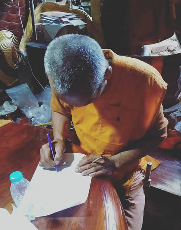 เริ่มต้น บรรจงปั้น ยันต์ครู......"ยันต์อุปัทเทยยะ" เป็นยันต์สมปรารถนาและเป็นยันต์ประจำตัวของหลวงพ่อหนุน สุวิชโย แค่ยันต์ชุดแรกก็เข้มขลังแล้ว...วัวธนูรุ่นแรก...ไม่ควารพลาดครับ