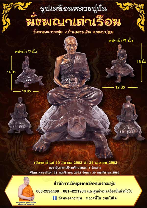 ฝากประชาสัมพันธ์พระดีพิธีดีอนาคตไกลและกำลังเป็นที่รู้จักของเชียนน้อย-ใหญ่ รูปเหมือนหลวงปู่ปั่นนั่งพญาเต่าเรือน วัดหนองกระทุ่ม อ.กำแพงแสน จ.นครปฐม เช่าบูชาได้ที่สำนักงานวัตถุมงคลวัดหนองกระทุ่ม 063-2534468,081-4221934 และศูนย์จองพระเครื่องชั้นนำทั่วไป (พระสร้างน้อยต้องรีบจองนะครับ) |