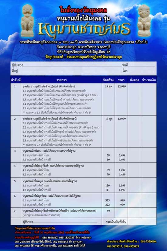 ร่วมสั่งจองได้ที่ศูนย์กระจายบุญตามรายละเอียดในใบจองครับ