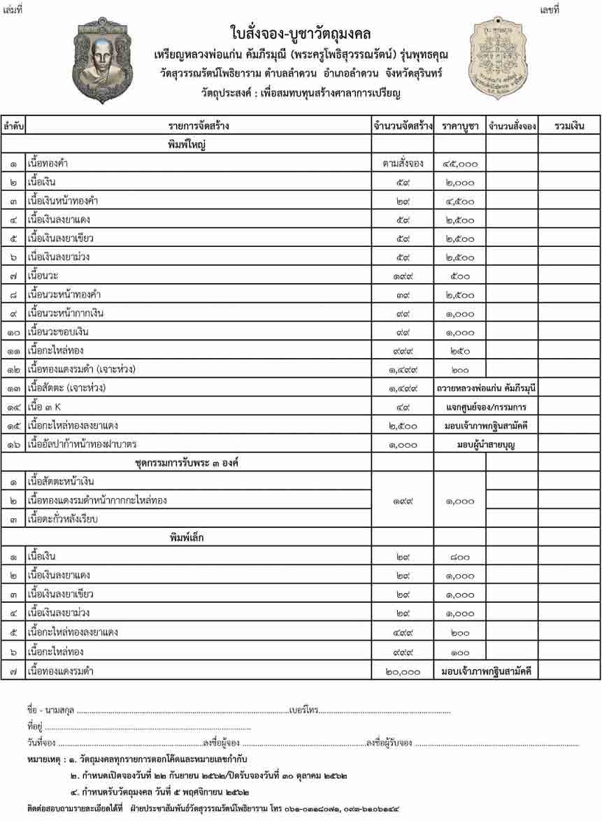 ศูนย์จองวัตถุมงคล "รุ่นพุทธคุณ"