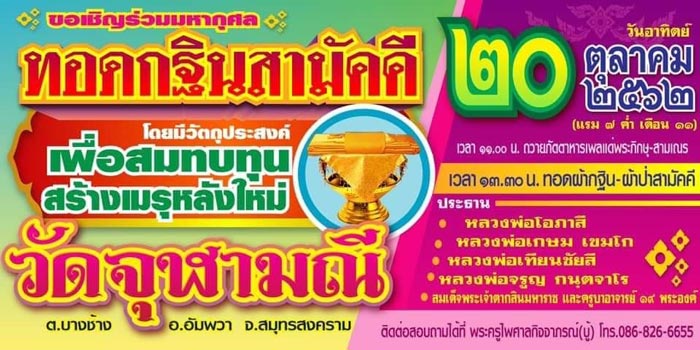 | หัวข้อกระทู้ : ขอเชิญร่วมบุญกฐินสามัคคี วัดจุฬามณี และ วัดชัยสถิต |