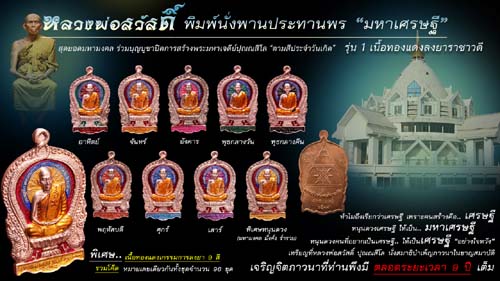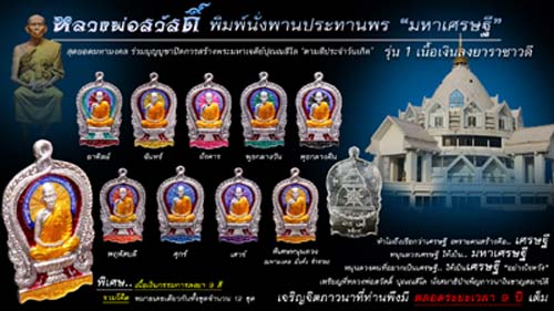 จึงมีมติในที่ประชุมให้มีการนำเหรียญนั่งพานมหาเศรษฐี รุ่นแรกที่ศิษย์มหาเศรษฐี ได้สร้างถวายไว้ในปี พ.ศ.2537 เป็นเหรียญเนื้อเงิน และเนื้อทองแดง เดิมที่ไม่มีการตอกโค๊ต ตอกเลข โดยจะนำเหรียญมา