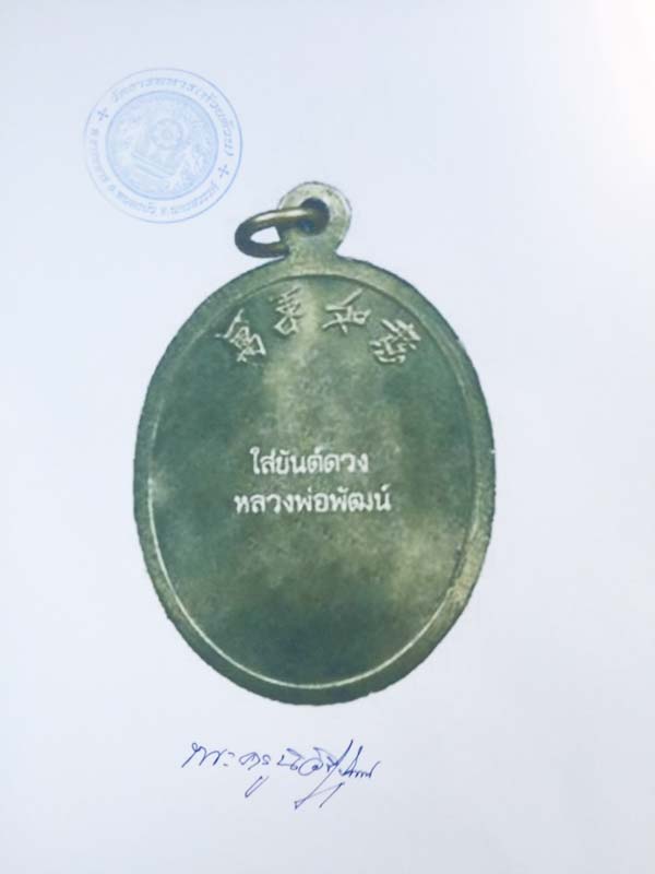 หลวงปู่พัฒน์ได้เมตตามอบยันต์ดวงของหลวงปู่ ให้มาบบรจุใส่ไว้ที่ด้านหลังเหรียญรุ่นนี