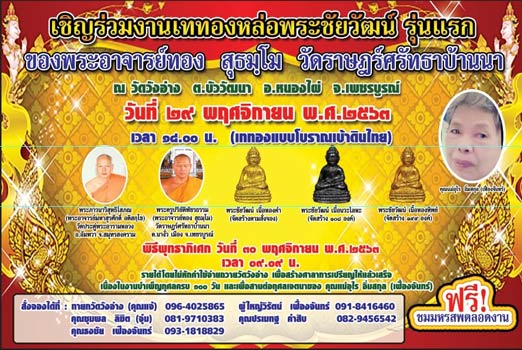 ขอเชิญร่วมงานเททองหล่อพระชัยวัฒน์ รุ่นแรก