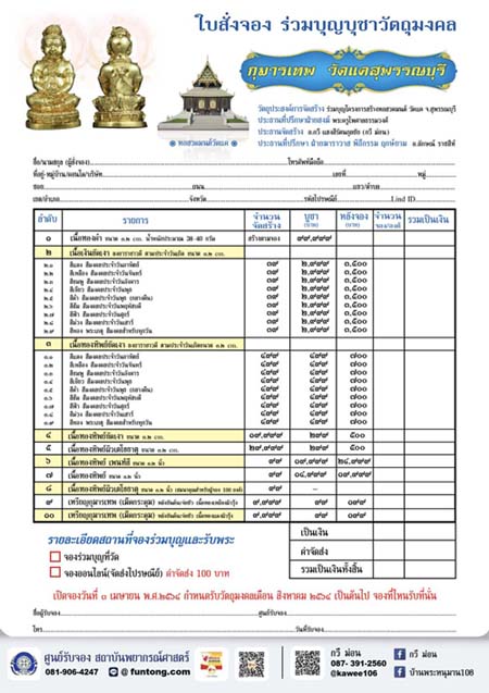 🛑ช่องทางการจองกุมารเทพ ร่วมบุญสร้างหอสวดมนต์วัดแค สุพรรณบุรี