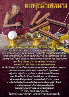 อิทธิคุณของตะกรุดม้าเสพนาง ท่านใดมีไว้บูชาติดตัว หญิงเห็น หญิงรัก ชายเห็นชายรัก เป็นเสน่ห์เป็นเมตตา สมหวังในชีวิตรัก ชีวิตคู่ ใครที่ผัวหน่าย เมียห่างหาย นำตะกรุดนี้ไปบูชาติดตัว จะสมหวังดังที่ใจปรารถนา ท่านใดที่ยังไม่มีคู่ก็จะสมหวังได้คู่เช่นกัน มีตะกรุดนี้ ไว้กับตัว พวกที่แอบชอบเค้าก็จะไม่ต้องแอบอีกต่อไป จะดึงดูดใจคนที่เราแอบชอบให้มาสนใจเรา ทำให้ตัวเรามีเสน่ห์มากยิ่งขึ้น ใช้คู่กับน้ำมันม้าเสพนาง พกติดตัวไว้จะเป็นเสน่ห์ยิ่งขึ้น