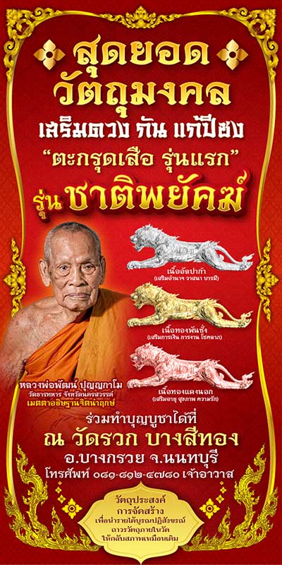 วัตถุประสงค์การจัดสร้าง : เพื่อนำรายได้บูรณปฎิสังขรณ์ภายในวัด อาทิ อุปัฏฐานศาลา , กุฏิสงฆ์ เป็นต้น |