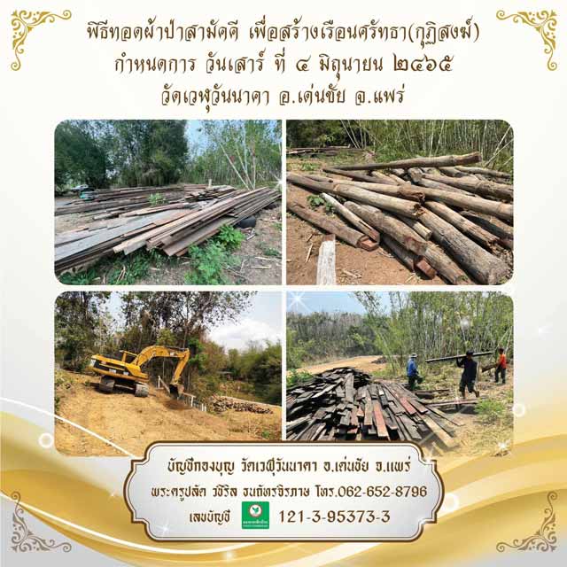 สอบถามร่วมบุญได้ที่ วัดเวฬุวันนาคา อ.เด่นชัย จ.แพร่ โทร.062-6528796 , 096-4539415 |